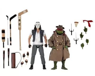 Most elcsípheted Amerika kedvenc zöld tinédzsereit első élőszereplős kasszasikerükben! Miután egy radioaktív hulladékkal teli tócsában gázolnak, ezek a radikális hüllők New York City legnagyobb bűnüldöző kvartettjévé alakulnak. Raphael, egy képzett sai-forgató ninja, jellegzetes fegyvereivel, alternatív kendőcsomóval és egy szelet pizzával érkezik. Fedorába, hátizsákba és valódi anyagból készült ballonkabátba álcázva éjszaka is képes a New York utcáin barangolni. Casey Jones, az álarcos igazságosztó, egy golftáskát cipel a hátán, tele finomságokkal, hogy elverje a Foot Clan-t, beleértve egy krikett- és baseballütőt, golfütőt és hokiütőket... rögtönzött fegyverek a bűnözés elleni háborújában! Ezek a rendkívül részletes figurák cserélhető kezekkel és filmes pontosságú kiegészítőkkel rendelkeznek, több mint 30 artikulációs ponttal a maximális pózolási erő érdekében!