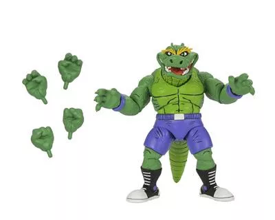 A first-time figure straight from the pages of Eastman and Laird’s Teenage Mutant Ninja Turtles Adventures comic book series from Archie Comics! This 7-inch scale Stump Wrestling Leatherhead action figure by NECA features a hinged jaw to chomp the champ and a bendy wire tail to bash turtle brains! It also includes extra hands and comes in reliable window box packaging with original box art by Ken Mitchroney.