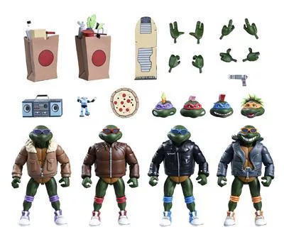 Based on the classic 1980s Teenage Mutant Ninja Turtles cartoon series! After being accidentally exposed to radioactive ooze, four ordinary household pets are transformed into a band of wisecracking, pizza-loving, villain-dicing adolescent reptiles! The Heroes in a Half Shell are ready to rock in this radical Punk Turtles 4-pack! These 7-inch scale action figures of Leonardo, Raphael, Michelangelo, and Donatello come loaded with all-new, episode-specific accessories! Presented in collector-friendly window box packaging.