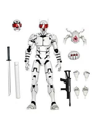 From the Teenage Mutant Ninja Turtles comic book series, The Last Ronin! In a future NYC far different than the one we know today, a lone surviving Turtle goes on a seemingly hopeless mission to obtain justice for his fallen family and friends. This SYNJA Patrol Bot action figure is authentic to the comic book depiction and stands in 7” scale, with a white and red color scheme. Includes interchangeable heads, extra hands, sword & sheath, laser, and Mousers. Comes in collector-friendly window box packaging with opening flap featuring a custom illustration by Ben Bishop.
