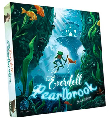 Fedezz fel egy új víz alatti társadalmat Pearlbrookban, Everdell első kiegészítőjében! A Pearlbrook egy új kiegészítő táblát vezet be, a folyó táblát, ahol békanagykövetedet küldheted, hogy új erőforrást gyűjtsön: gyöngyöket. Új vízi élőlényekkel és építményekkel is találkozhatsz! Gyűjts össze elég gyöngyöt, és mesés csodákat és díszeket építhetsz, hogy városod Eve