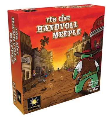 Im Wilden Western-Familienspiel Für eine Handvoll Meeple trifft das klassische Mancala auf Worker-Placement-Elemente. Jede Runde schnappen sich die Spieler eine Handvoll Meeple und verteilen sie auf dem Spielplan, um verschiedenste Aktionen auszuführen: Gold graben, Gebäude in Besitz nehmen, sich auf der Straße duellieren oder explosive Gefängnisausbrüche über die Bühne bringen. Wenn sich der Staub gelegt hat, gewinnt, wer die meisten Punkte hat.
