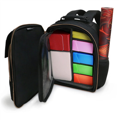 ENHANCE Tabletop Compact Trading Card Backpack Bring your best to your next tournament or game night! The ENHANCE Magic the Gathering Backpack that features a spacious interior designed to store up to 2 400-Count cardboard boxes for cards, deck boxes, loose sleeved cards, or other mtg accessories. The front pocket includes a pocket designed to carry dice bags, pencils/pens, loose die, tokens, and other accessories used in tournaments and game nights at your local shop.