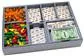 Játékhoz tervezett betét, külső dobozméretei 31,2 x 22,1 x 5,8 cm. Azt is vedd figyelembe, hogy teljesen megpakolva a fedél 4 mm-rel megemelkedik. A betét kompatibilis a Food Chain Magnate® kiegészítővel, vagy külön a The Ketchup Mechanism & Other Ideas® kiegészítővel. A kialakítás hatékony tárolást és jobb játékélményt biztosít. Sok tálca használható a játék során, és nagyban segítik az előkészületeket és az elpakolásokat. A szabályok és a játékosmenük fedélként szolgálnak a tálcák tetején. Ha mind a játékot, mind a kiegészítőt megvan, akkor két FS-FCM betétre lesz szükséged, mindkét dobozhoz egyre-egyre. A térképlapok két tízes kötegben helyezkednek el a doboz bal oldalán. A betét tálcákat tartalmaz a játék összes elemének tárolására és rendszerezésére, az itt látható módon. A kártyatálcák mérete úgy van kialakítva, hogy minden kártya beleférjen. Amikor a betétet a The Ketchup Mechanism & Other Ideas® kiegészítőben használod, három tálca alternatív összeszerelési móddal rendelkezik. Ezen tálcák 2. változatának használatával a kiegészítők összes eleme tárolható és rendszerezhető a kiegészítő dobozban. Ebben az esetben a térképlapkák két, egyenként három lapkával ellátott halomba vannak rendezve. A nagy étel- és italtálca magasabb falakkal készült, hogy a nagyobb darabokat és az új ételtípusokat tárolhassa. A pénzérmék tálcáját átalakították, hogy zsetonok és lapkák tárolhatók legyenek rajta. A ház- és marketinglapka-tálcát pedig elválasztók nélkül dolgozták át, hogy a nagyobb kóla- és sördarabokat is tárolhassa rajta. Fontos megjegyezni, hogy a The Ketchup Mechanism & Other Ideas® kiegészítőből származó további hatodik játékos étteremlánc-lapkákat és az új marketinglapkákat hozzá kell adni az alapjáték megfelelő tálcáihoz.