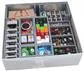 The two large card trays have space for all cards to be sleeved, and have large side dips to give easy access to the cards. FS-RMDIRT includes two cardboard tuck boxes for storage of all the map tiles. These can be stored on your shelf next to the game, and have a print design in keeping with the game box. The two tuck boxes are supplied in flat-pack form and need some assembly. Firstly open the box and fold back all the crease lines so that the box stands square. You next need to fit the box bottom pieces together. Start with the long rectangular piece, followed by the side flaps, and lastly insert the piece with a tab as shown. We recommend gluing the box bottom tabs together to improve strength as the map tiles are heavy. Once the insert trays are packed into the box you need to place the damage token bag on top of one stack of cards and add the six dashboards on top of the dashboard token trays as shown. Then simply place all the rule books on top of the insert (note that there is room for just one langauge version of the rule books). Once fully loaded the box is filled to the top, allowing for vertical storage. FS-RMDIRT is an official game accessory. All trademarks and copyrights remain the property of their respective owners, which are in no way associated or affiliated with Folded Space EOOD.