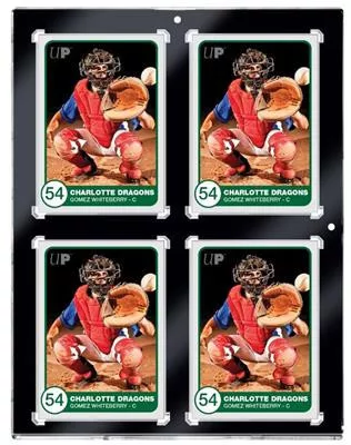 Sized to fit four standard size (2.5" x 3.5") sports trading cards or gaming cards up to 130pt in thickness