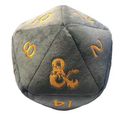 Make your next saving throw safely with the official Dungeons & Dragons Jumbo Plush Dice! Made with an ultra-soft, fuzzy grey fabric with stitched orange numbers, this D20 is soft enough to cuddle during a long rest. Measuring approximately 10 inches in diameter, with reinforced felt backing to help the die retain its shape, this stuffed toy is great for kids and adults alike!