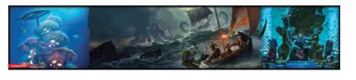 Der Ozean ist ein riesiger und gefährlicher Ort, angefüllt mit Abenteuern oberhalb und unterhalb der Wellen. Dieser Spielleiterschirm ist eine perfekter Ergänzung, um Abenteuer auf Hoher See zu spielen, so wie man sie in Geister von Salzmarsch findet. Auf der atmosphärischen Vorderseite sind eine Reihe von Szenen dargestellt, in denen sich die Helden wiederfinden können, beginnend beim Angriff eines Kraken bis hin zum Treffen mit einem Baron der Sahuagin. Auf der Rückseite findet der Spielleiter eine Reihe nützlicher Regelreferenzen, um Begegnungen auf See schneller darzustellen, darunter beispielsweise zufällige Schiffe und einige Gefahren, denen sich die Charaktere auf See stellen müssen.
