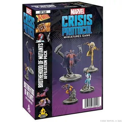 A játékosok elkezdhetik toborozni saját Brotherhood of Mutants karaktereiket a Marvel: Crisis Protocol játékaikhoz ezzel az új Affiliation Pack csomaggal! Magneto, Mystique, Sabretooth és Toad rendkívül részletes miniatúráit egyetlen csomagban gyűjti össze, így ez a csomag mindent megad a játékosoknak, amire szükségük van a Brotherhood of Mutants Affiliation-val való játék megkezdéséhez. A miniatúrák mellett a játékosok megtalálják a karakterek új grafikai dizájnnal ellátott statisztikai kártyáit is. A csomagot az Asteroid M, X-Ceptional Healing, Weapon X Program, Magnetic Refraction, Magnetic Crush, Heave Ho, The Books of Truth és Deception Team Tactic Cards teszi teljessé, biztosítva, hogy a játékosoknak mindenük meglegyen, amire szükségük van ahhoz, hogy leszámoljanak bárkivel, aki szembeszáll a Testvériségükkel.