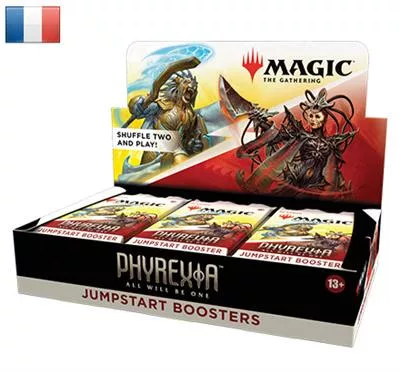 A Phyrexia: All Will Be One Jumpstart Booster doboz 18 Phyrexia: All Will Be One Jumpstart Booster kártyát tartalmaz. Minden boosternek van egy témája. Csak fogj két csomagot, és keverd össze őket vad kombinációkért és egyedi játékélményért, ami nagyszerű egy gyors játékhoz, a régi rajongóknak, akik szeretnének visszatérni, vagy egy szórakoztató, egyszerű módra a játék elsajátítására.